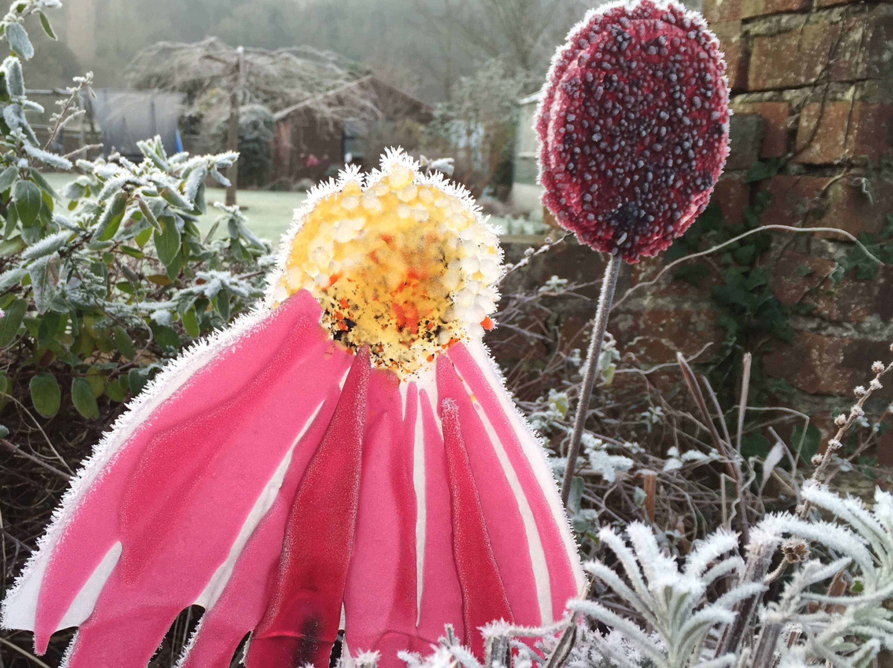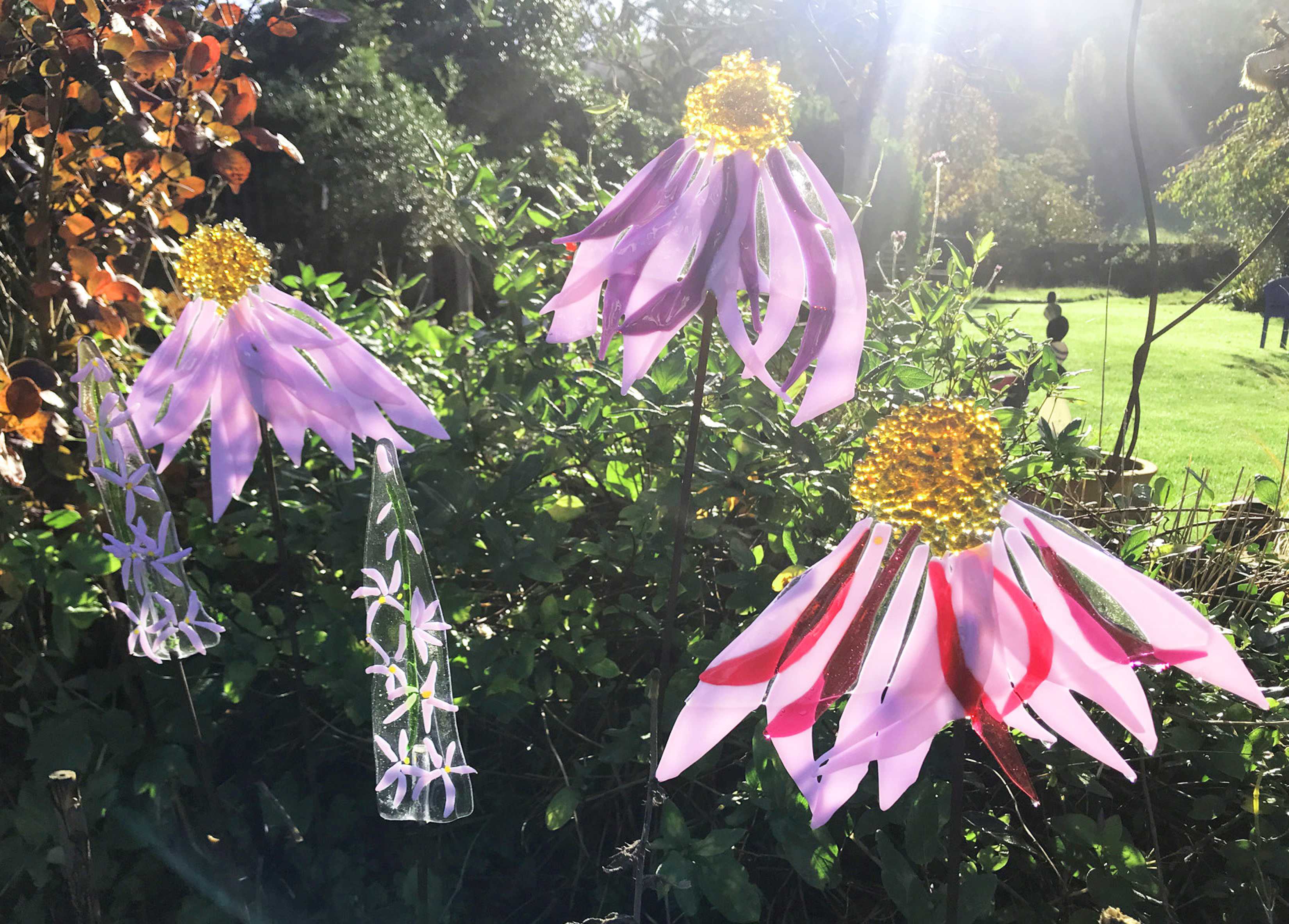 Pauline's studio is nestled at the foot of the downs in a beautiful garden full of floral influences, her handmade creations and decorations can be displayed in the home or even in your own garden, to capture the light as it changes through the seasons. The glass is used in all forms, colours and shapes and nothing is wasted, the smallest piece can be recycled and reused in another creation.
