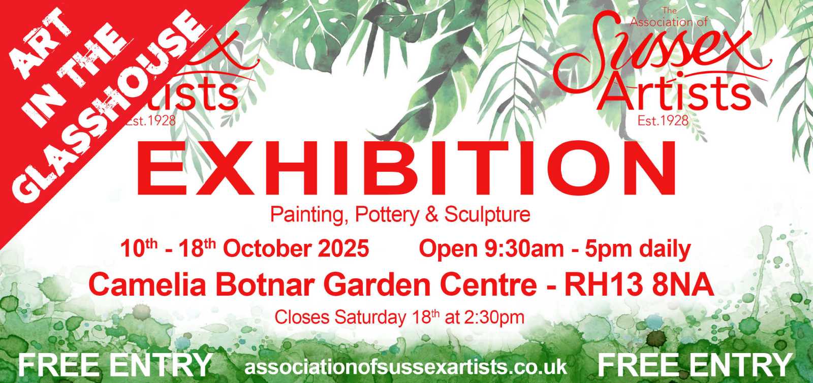 This is the Association’s first Annual Exhibition at its new venue, Camelia Botnar, so come along to browse and to buy — or just to enjoy “Art in the Glasshouse”.