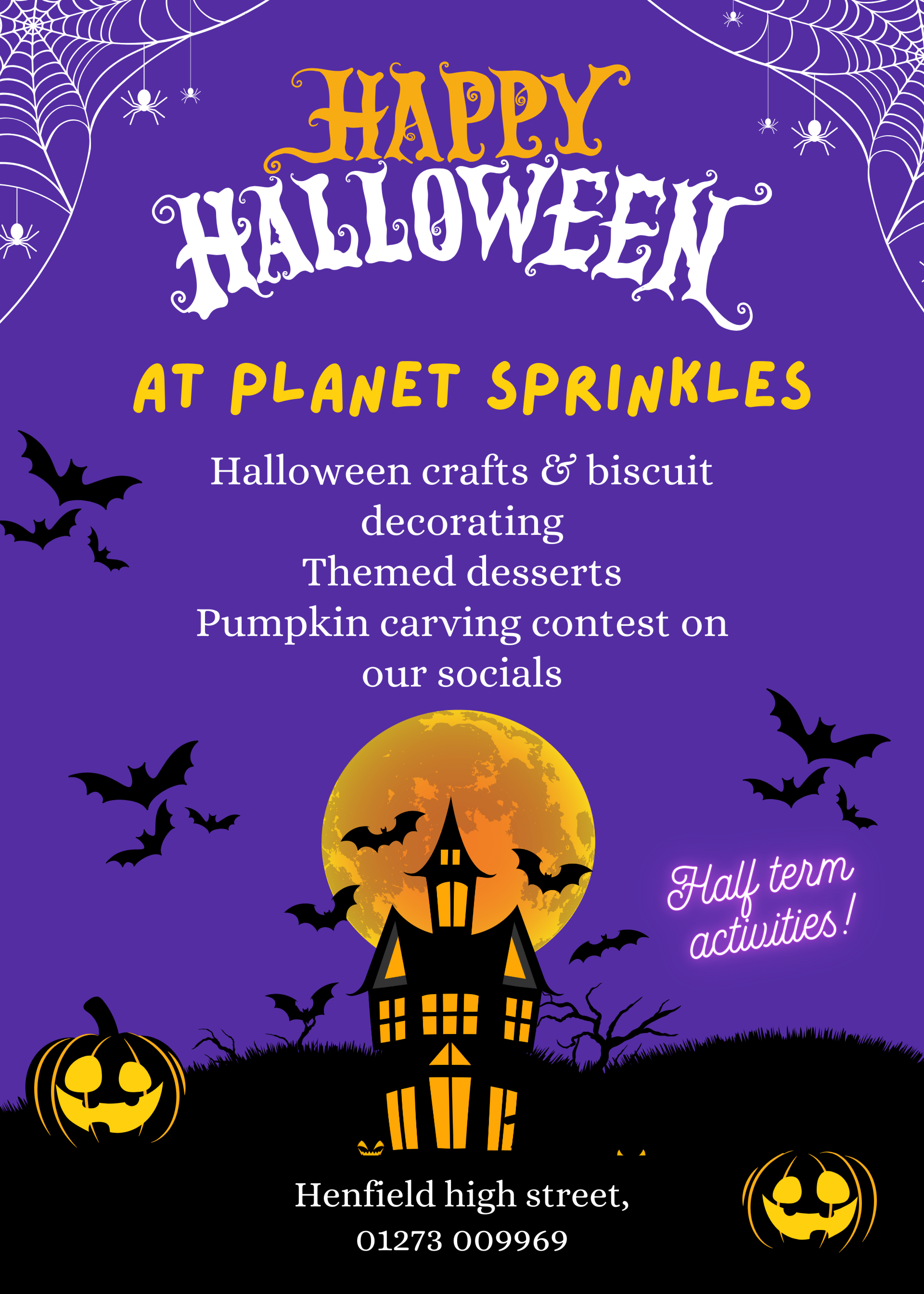 Planet Sprinkles on Henfield High Street will have Halloween biscuit decorating during the school holiday (£1 each) and free Halloween crafts.