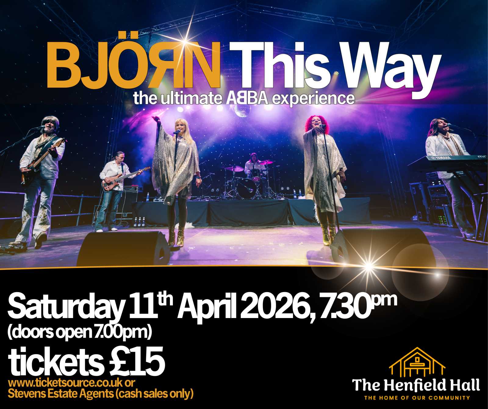Don't be fooled. They're not ABBA - but Mamma Mia they're close! The show delivers full 70's glitz and glamour. Tickets on sale from https://ticketsource.co.uk/henfield-hall or cash sales from Stevens Estate Agents, High Street, Henfield.