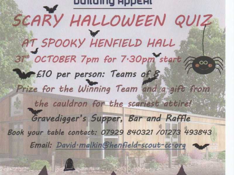 Henfield Scout Community Centre Building Appeal invite you to join us for our "Halloween Quiz" Doors open at 7pm on Friday 31st October, Quiz begins at 7.30pm,…