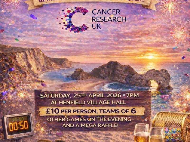 Quiz night to support the fundraising of henfield locals taking on a 100k trek in 24 hours across the Jurassic coast in aid of Cancer Research UK. Teams of 6,…