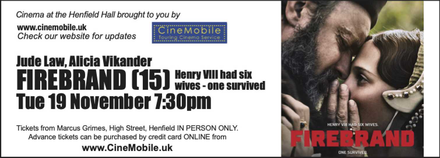 This month's cinema at The Henfield Hall is Firebrand (15).