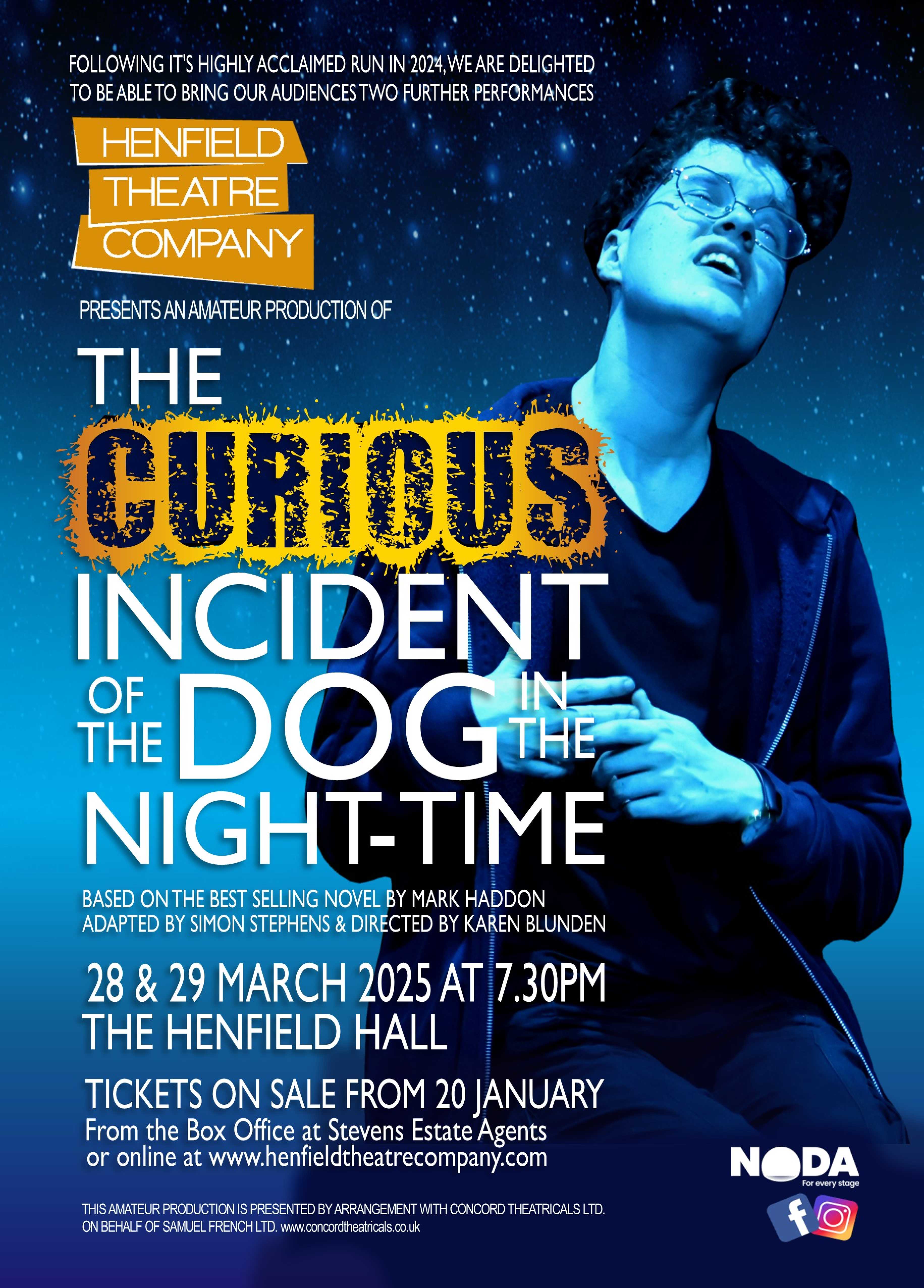 After the resounding success of Henfield Theatre Company’s “The Curious Incident of the Dog in the Night-time” last July, our local amateur dramatic society has decided to bring the critically acclaimed production back to The Henfield Hall stage. Winner of 7 Olivier Awards, including Best New Play in 2013, and based on the novel by Mark Haddon with adaptation for the stage by Simon Stephens, “Curious Incident” has been performed in the West End and on a tour of the World. Henfield Theatre Company were privileged to be one of the first amateur dramatic societies to be granted the licence and are thrilled to be bringing it back to the local stage again in March 2025.
