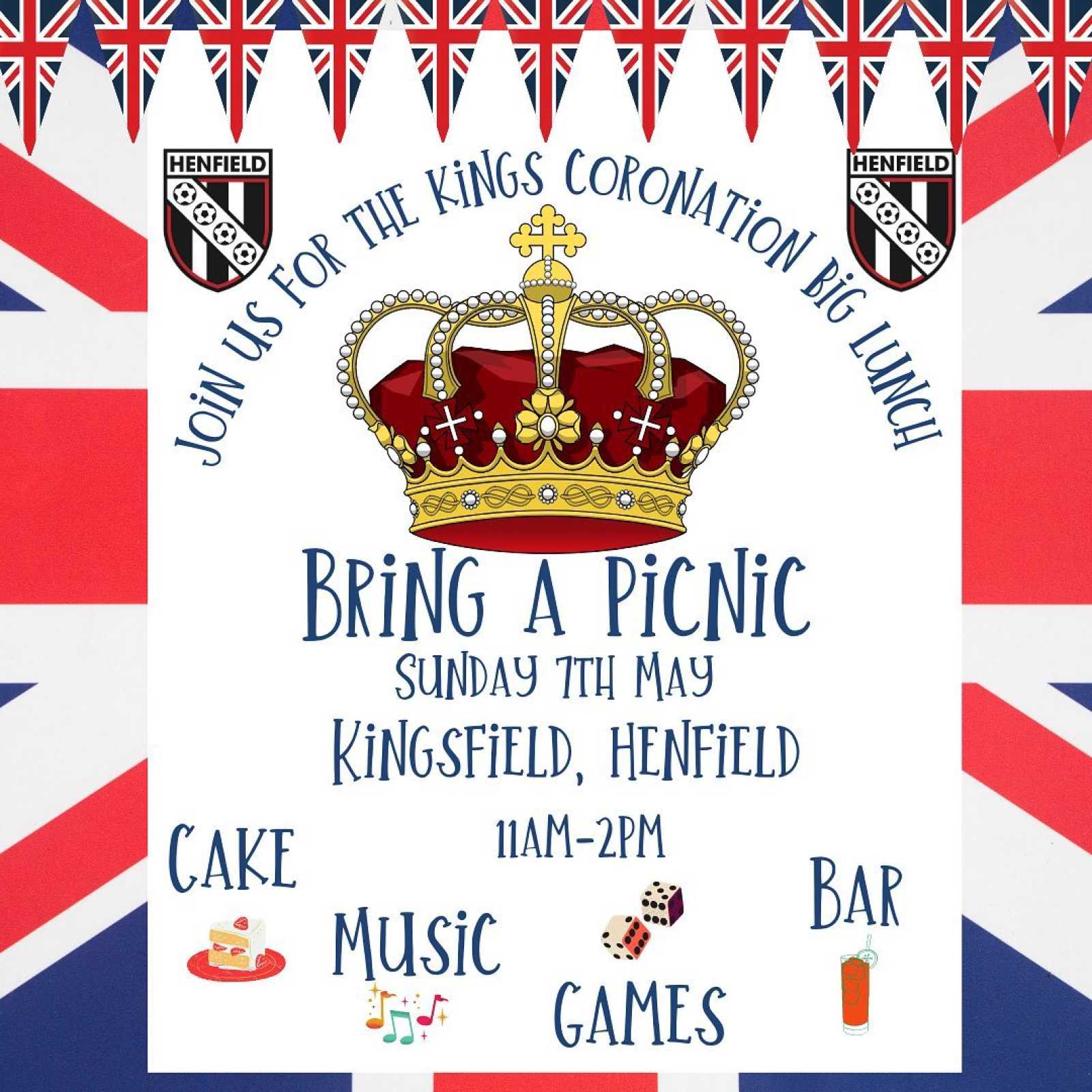 Henfield Football Club invite you to join them for their King's Coronation Big Lunch on the King's Field, near Henfield Leisure Centre.
