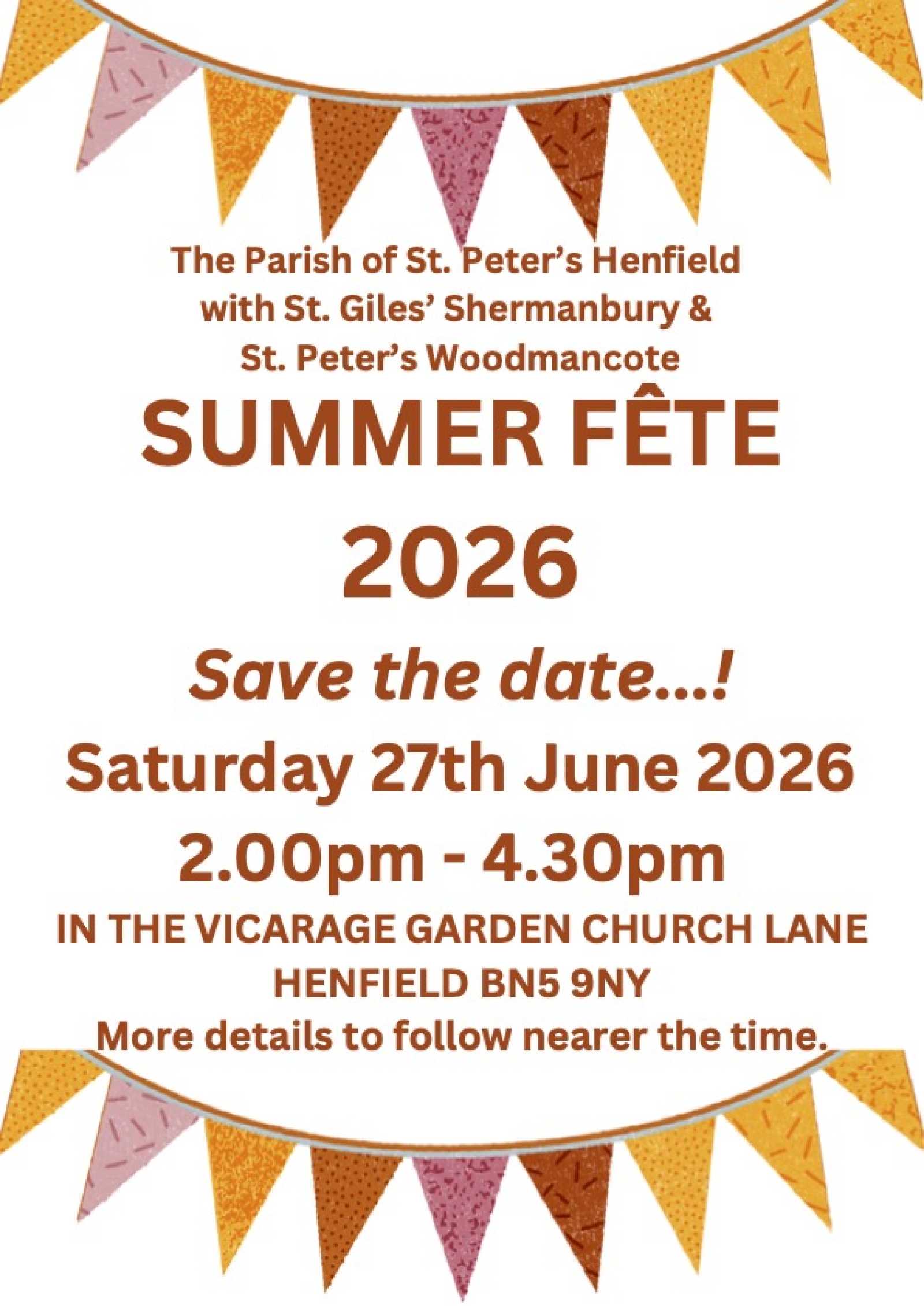 A traditional Summer Fête held in the Vicarage Garden, Church Lane, Henfield. Music, food, activities, cakes and produce and much much more. More details to follow closer to the event.