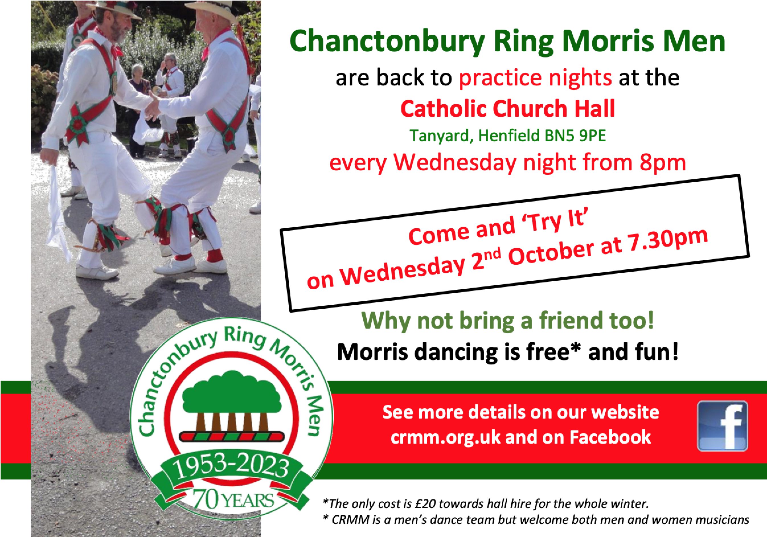 Chantonbury Ring Morris Men are back to their weekly practice nights and would love to invite people to 'come along and have a try' at a taster session.
