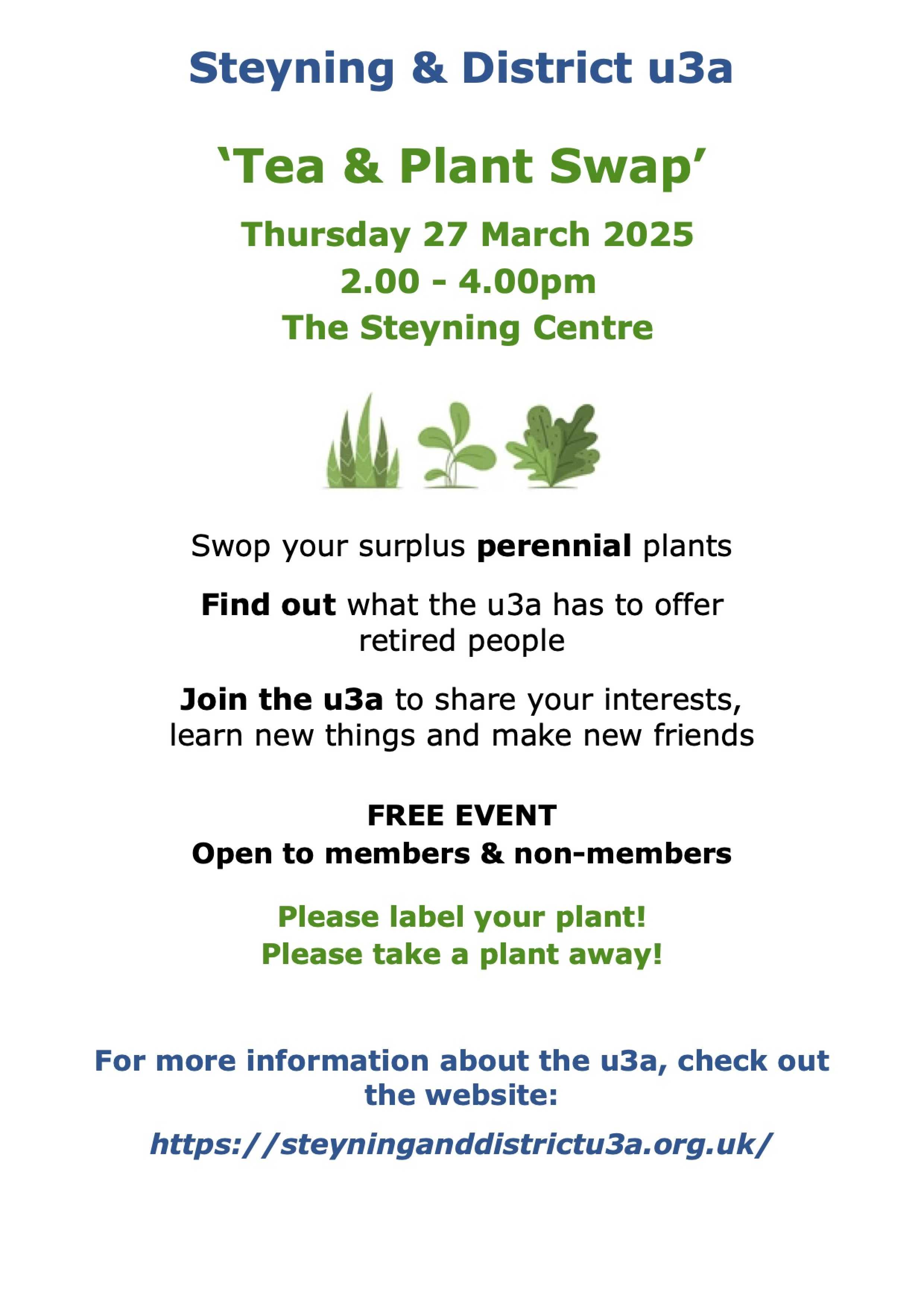 Join The Steyning & District u3a for a Plant Swap and to find out more information on the group.