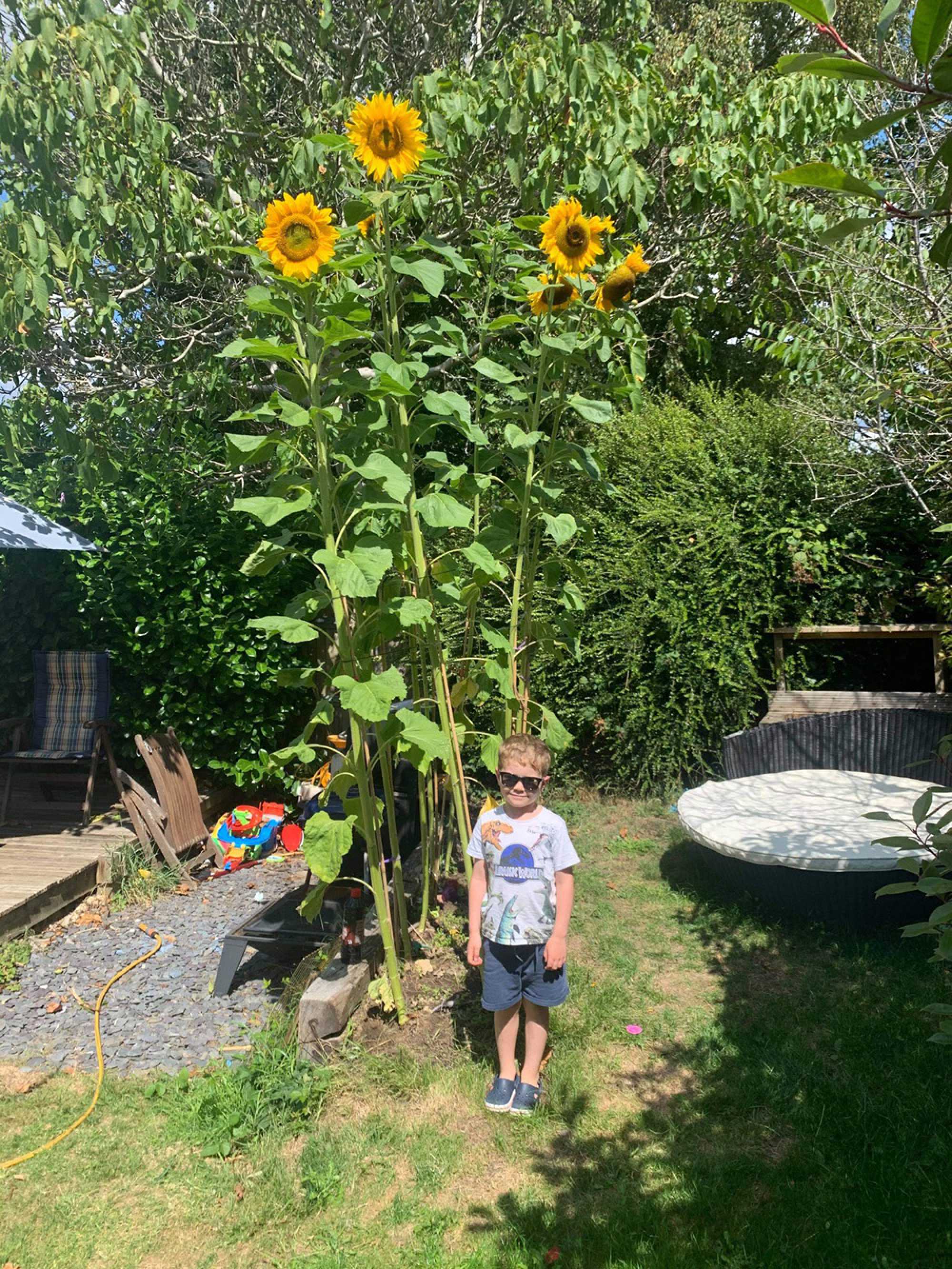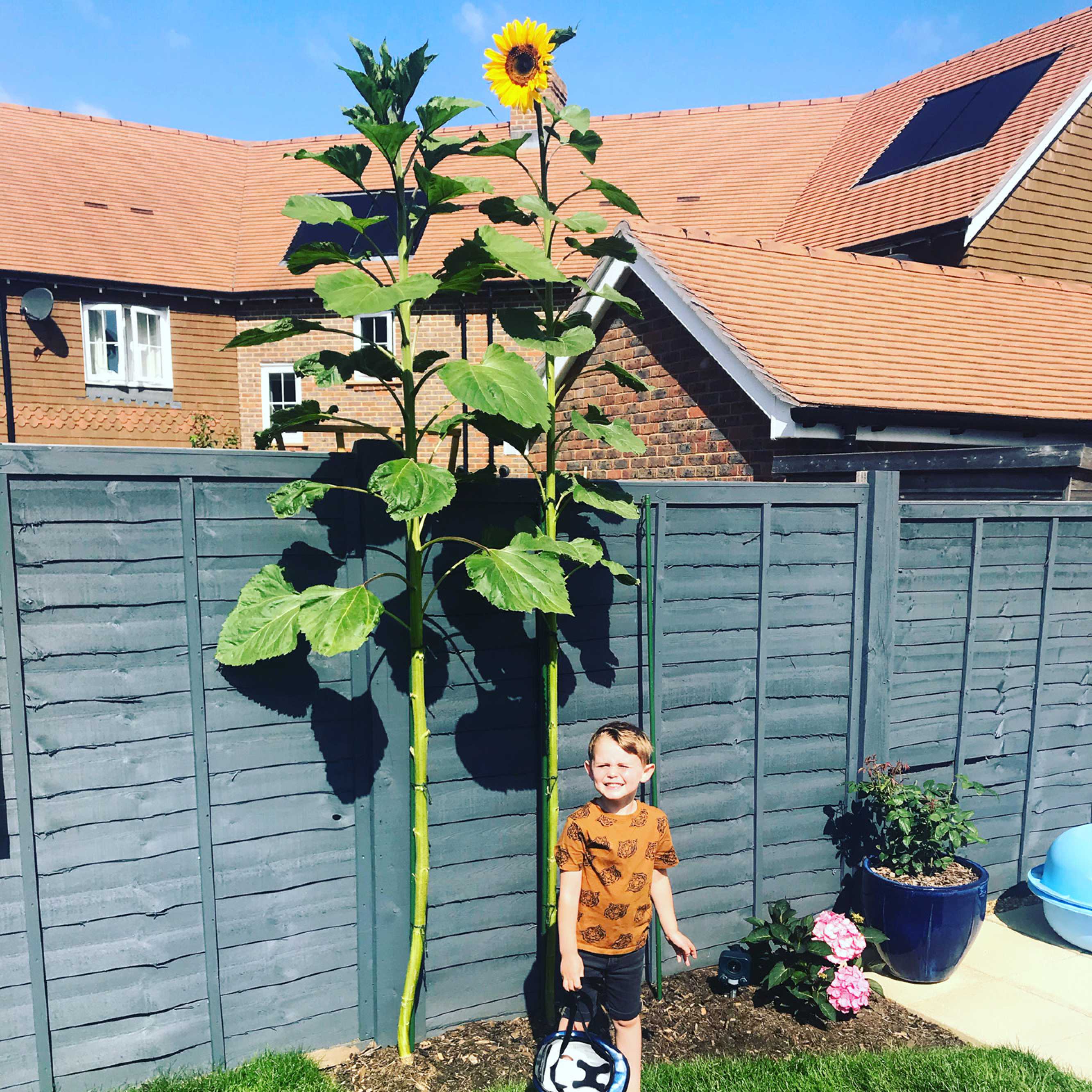 Ally Bull: “… our (just over) 8ft tall sunflower that Amelia and Jack planted. We picked up the small seedling on one our walks at the beginning of lockdown and they are very happy with how tall it has grown.”