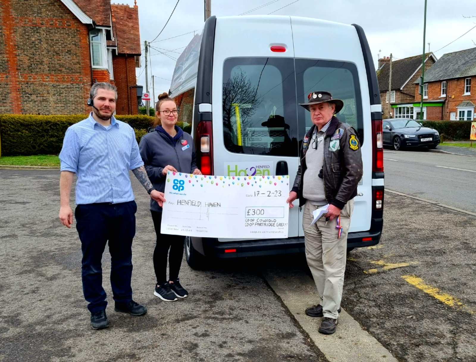 In February the Henfield Haven was delighted to receive a £300 donation from the Co-Op. The Haven was one of three local charities chosen by customers of the Co-Ops in Cowfold and Partridge Green to benefit from the local community fund. Every time Co-Op members buy selected Co-op branded products and services, 2p in every pound is donated to local causes and charities.