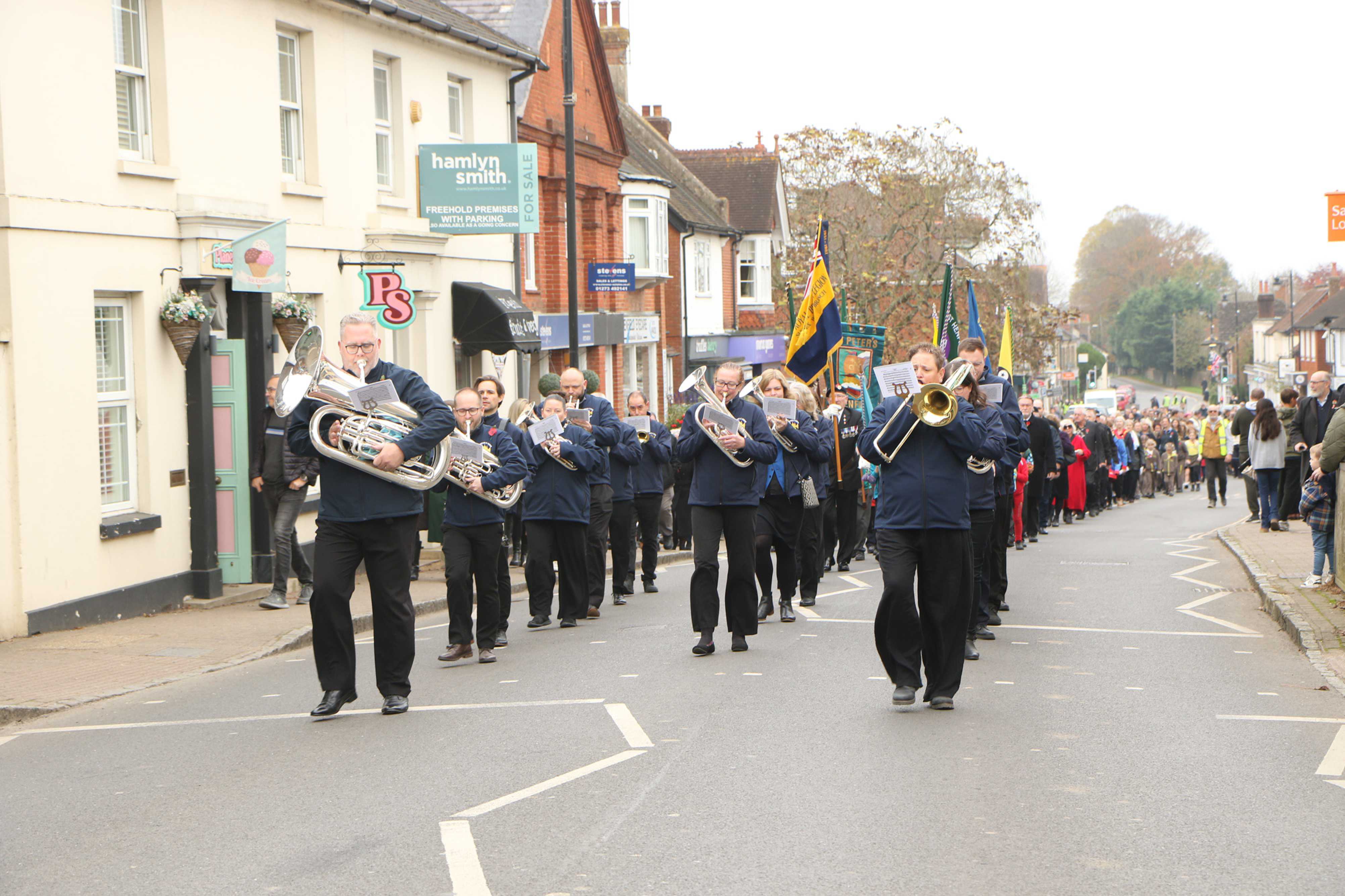 Brighton City Brass led the parade of local organisations, including ex-service personnel, Scouting and Guiding groups, local organisations and the Clergy. They mustered at the War Memorial in Cagefoot Lane and marched to St Peter’s Church for the annual Service of Remembrance.
