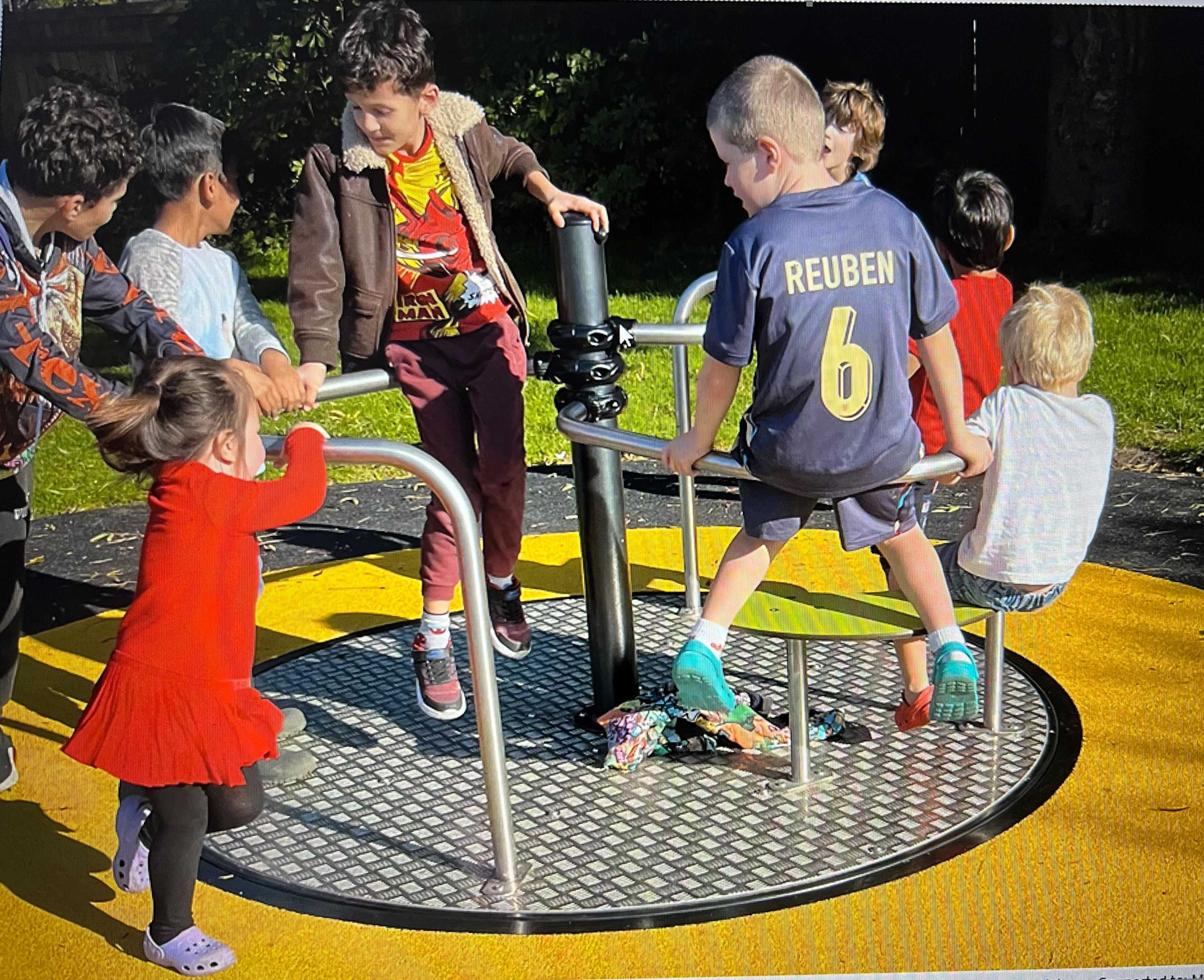 Back in September, the first of these improvements was completed and a new roundabout was installed. It’s an inclusive piece of play equipment, so that children with disabilities, wheelchair users, children in prams and able-bodied children can all play on it together. It’s a great way to promote play for all and to ensure we are catering for all abilities in our play areas.